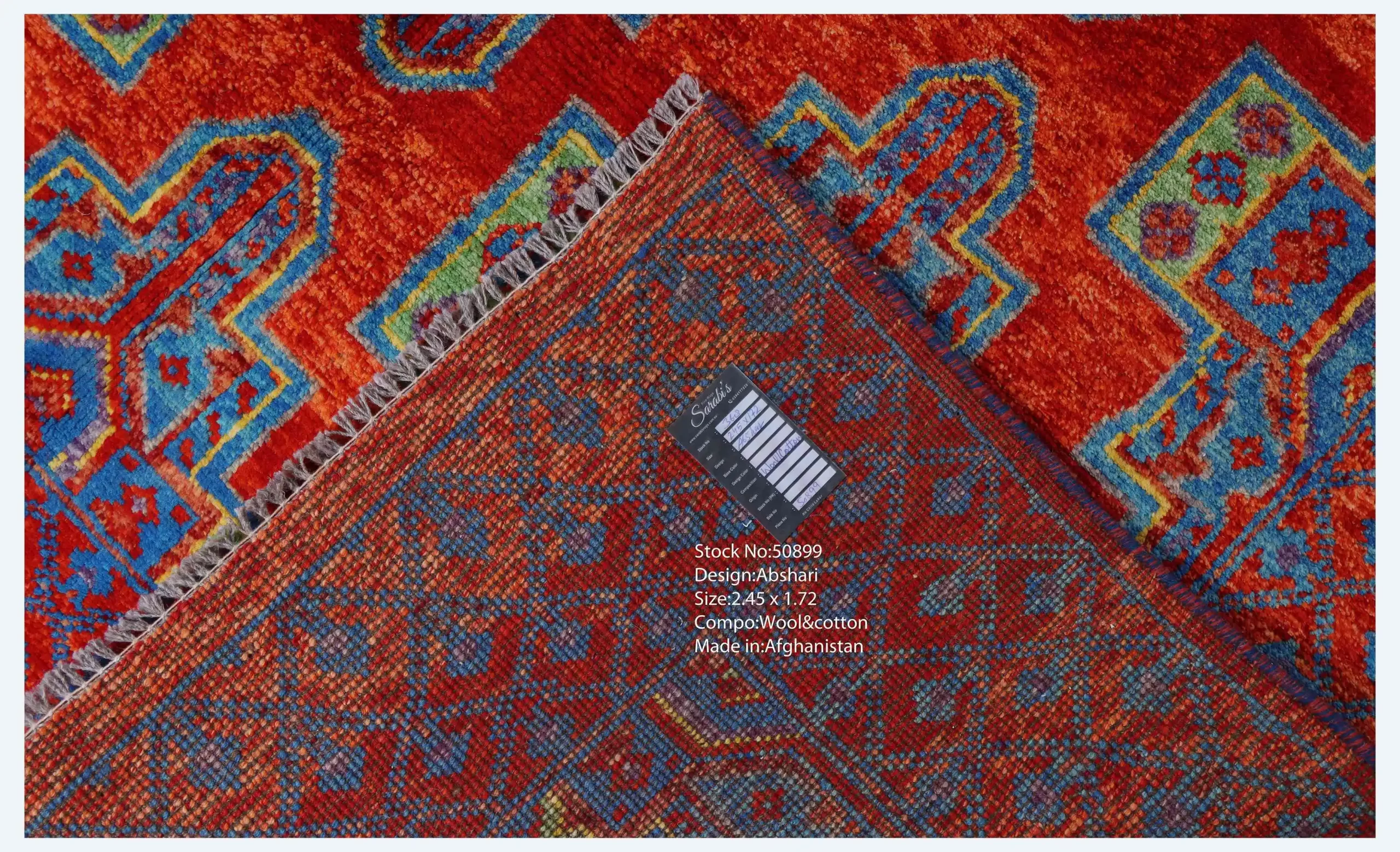 Abshari Rugs are medallion design, red base color with red and emerald green figures.
