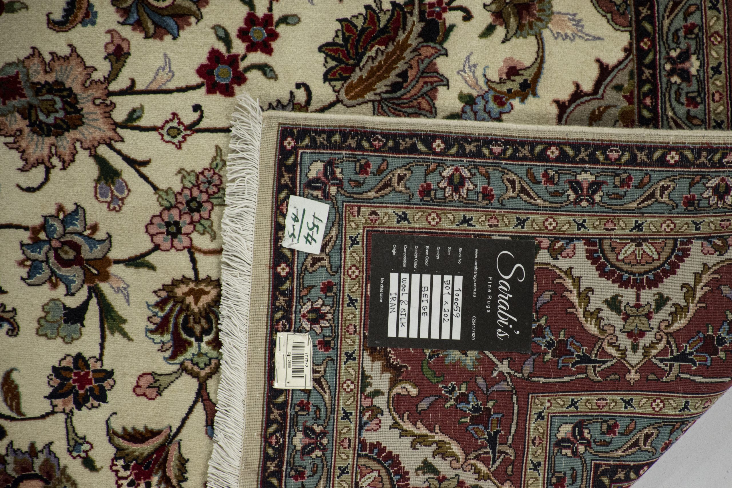 100059 Persian Tabriz Rug 50 Raj wool and silk. Traditional curvilinear designs float calmly in the pale central field of this lovely finely hand knotted pure wool large area rug.